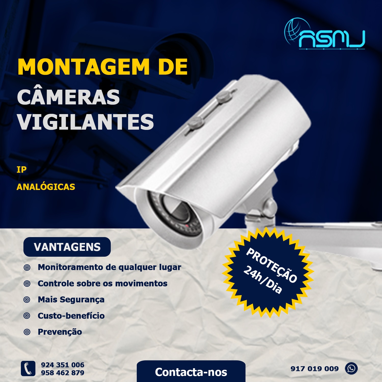 A ASMJ oferece soluções completas e integradas em Segurança Eletrónica, desenvolvidas para proteger pessoas, património e informações com tecnologia moderna, confiável e eficiente. Atuamos com foco na prevenção, no controlo e na resposta rápida a incidentes, garantindo tranquilidade e segurança contínua aos nossos clientes.